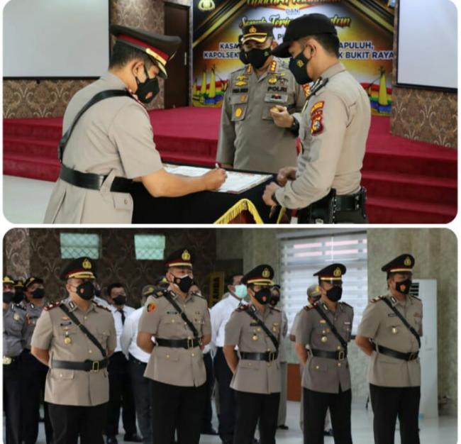 Upacara Pelantikan Kasat Intelkam dan Serah Terima Jabatan Kapolsek Lima Puluh, Kapolsek Senapelan Dan Kapolsek Bukit Raya Polresta Pekanbaru diserahterimakan oleh Kapolresta Kota Pekanbaru.