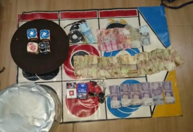 Dalam penangkapan berhasil mengamankan Barang Bukti berupa seperangkat peralatan dadu 10 (sepuluh) butir mata dadu), 2 buah tempurung kelapa dan lapak yang bertuliskan angka pasangan serta lampu buat penerangan, Uang tunai sebesar Rp. 5.325.000 ( lima juta tiga ratus dua puluh lima ribu rupiah ) disita dari tersangka, 4 buku tulis, Accu dan lampu penerangan, 4 spidol warna hitam, 5 buah bangku terbuat dari plastik dan Tas kain warna merah kombinasi bunga.