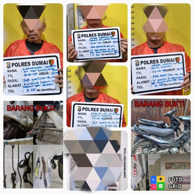 Dijelaskan Kapolres Dumai AKBP Nurhadi Ismanto, S.H, S.I.K melalui Kasat Reskrim Polres Dumai AKP Aris Gunadi, S.I.K, M.H didampingi Kanit Pidum Sat Reskrim Polres Dumai Ipda Hendra Hutagaol, S.H kepada rekan media, 3 (tiga) tersangka berinisial RS (37), IZ (52) dan ML (50) berhasil diamankan Tim Opsnal Sat Reskrim Polres Dumai saat sedang melakukan tindak pidana pencurian dengan pemberatan (Curat) di Gardu Kontrol Saluran Telkom Rumah.