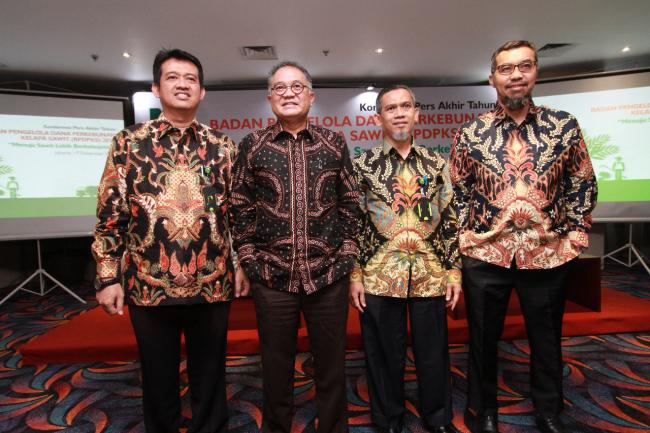 Badan Pengelola Dana Perkebunan Kelapa Sawit (BPDPKS) memberi dukungan untuk industri sawit Indonesia lebih berkelanjutan. Badan Layanan Umum (BLU) di bawah koordinasi Kementerian Koordinator Bidang Perekonomian ini mempaparkan hal itu dalam konferensi pers akhir tahun 2019 di Jakarta, Kamis, 19 Desember 2019.