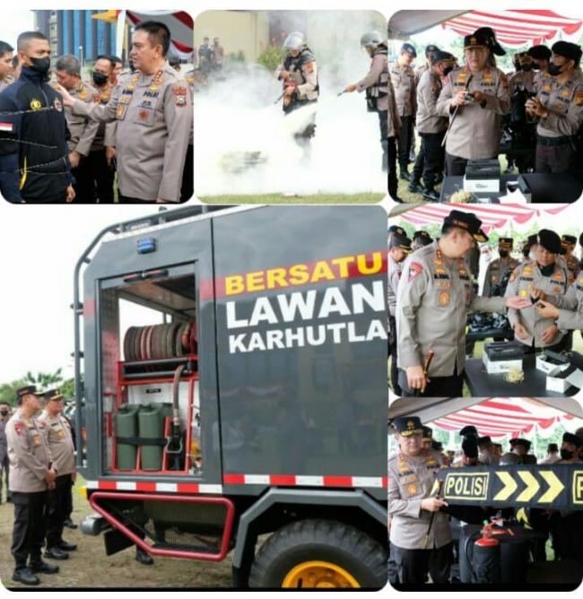Usai menyampaikan pengarahan, Kapolda Riau berkesempatan melakukan pengecekan langsung dan melihat peragaan penggunaan peralatan.