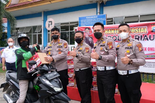 Polda Riau dan Jajaran Bagikan 5 Ribu Paket Sembako, Driver Ojol : Terimakasih Pak Kapolda Pedulikan