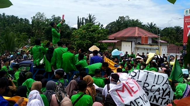 Rohul (Riau) Membacabangsa co. Id. Ribuan mahasiswa yang tergabung dari tiga universitas, melakukan aksi demo besar - besaran di gedung DPRD Kabupaten Rokan Hulu (Rohul) untuk menyuarakan penolakan kenaikan Bahan Bakar Minyak (BBM) yang dilakukan oleh pemerintah pusat rabu 14 september 2022.