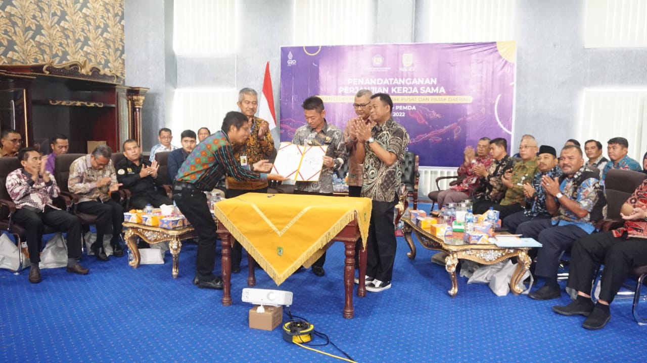 Rapat penandatanganan perjanjian kerjasama optimalisasi pemungutan pajak pusat dan pajak Daerah, antara DJP, DJPK dan Pemerintah Daerah tahun 2022 tersebut dipimpin langsung oleh Direktur Jendral Pajak Suryo Utomo.