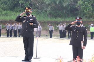 Sebagai Inspektur Upacara, Kapolres Rohul AKBP Pangucap Priyo Soegito SIK MH, membacakan amanat Menteri Pemuda Dan Olahraga Republik Indonesia Zainuddin Amali.