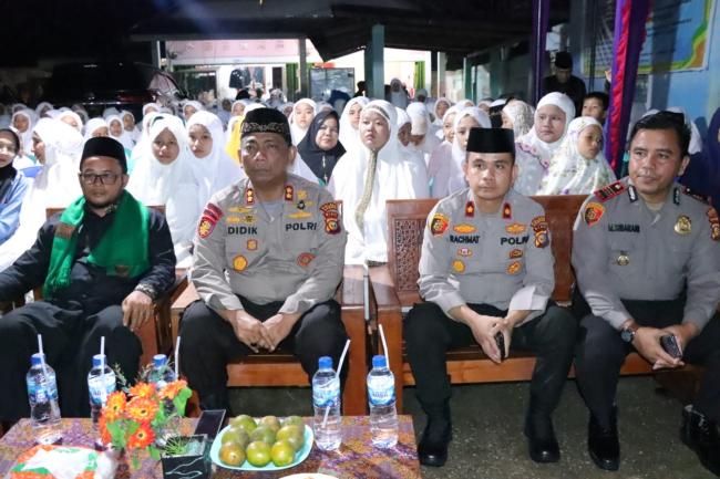 MEMBACABANGSA.CO.ID KAMPAR -KAMPARUTARA- Kapolres Kampar AKBP Didik Priyo Sambodo SIK bersama jajarannya mengunjungi Pondok Pesatren Al Fatah dalam rangka Haul Pendiri Pondok Pesatren Al Fatah Desa Sendayan, Kecamatan Kampar Utara dengan tema Jum'at curhat bersama Kapolres Kampar, Jum'at (28/10/2022) sekira pukul 19.30 WIB.