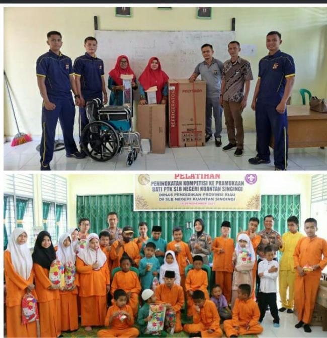 MEMBACABANGSA.CO.ID KUANSING - Polres Kuantan Singingi melaksanakan kunjungan dan bantuan sosial ke SLB ( Sekolah Luar Biasa ) Negeri Teluk Kuantan yang dipimpin langsung oleh Kapolres Kuansing AKBP Rendra Oktha Dinata, SIK., M.Si serta dihadiri oleh Iptu Alpasbed KBO Binmas, Ipda Arpisman Kasi Dokkes, personel Sat Binmas, personel Sat Lantas dan personel Si Humas, pada jumat (04/11/2022) pukul 09.00 WIB, di Kelurahan Jake Kecamatan Kuantan Tengah Kabupaten Kuantan Singingi (Kuansing).