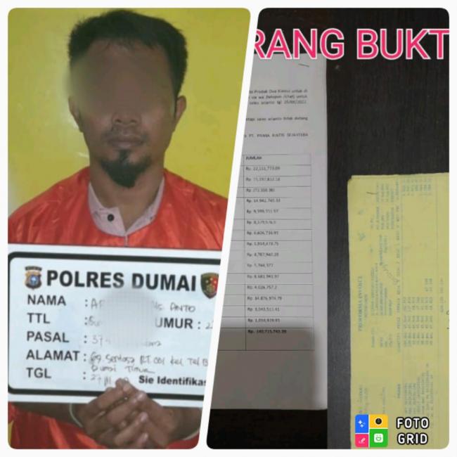 Pelaku Penggelapan dalam Jabatan yang diamankan oleh Aparat Kepolisian Jajaran Unit Pidum Satreskrim Polres Dumai tersebut adalah pelaku berinisial A (22).