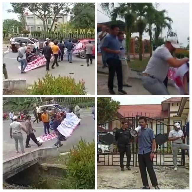 “tangkap,pecat koruptor”Jelas ini kalimat menuduh dan tidak ber'etika,padahal mereka saat orasi mengatakan kampar ini Serambi mekah,tetapi tulisannya menghakimi.