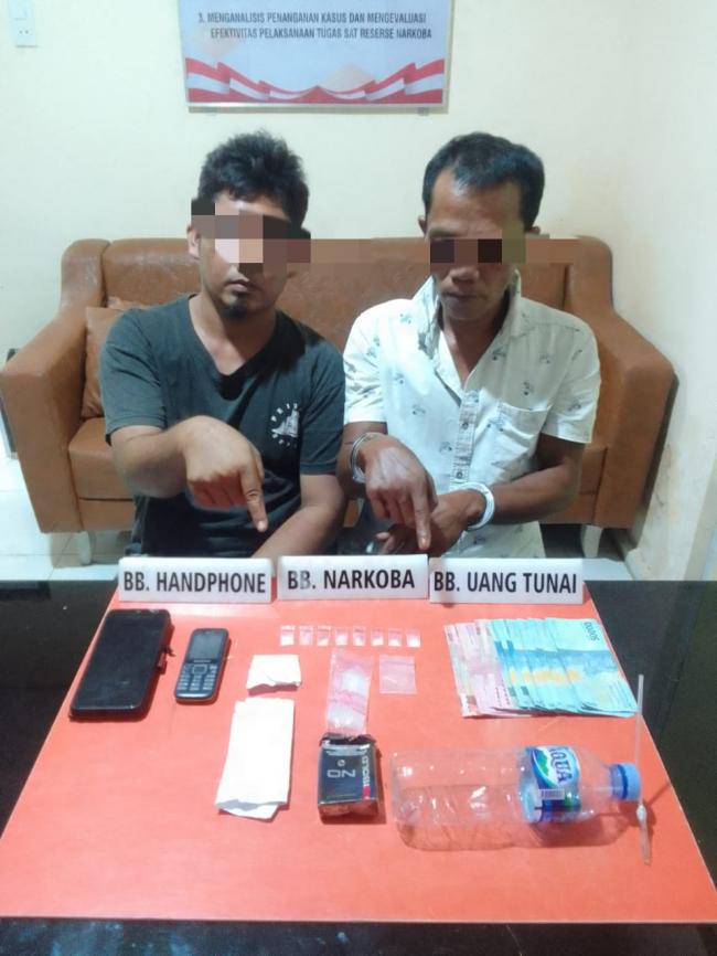 Dari penangkapan keduanya berhasil diamankan, 8 paket narkoba jenis shabu-shabu yang dibungkus dengan plastik bening, (Bruto 1.41 Gram), HP Samsung, HP Vivo, kotak rokok On Bold, 2 kertas HVS, seball plastik klip putih bening, plastik putih bening, bong, kaca pirex dan uang hasil penjualan sebesar Rp 2.000.000 (dua juta rupiah).