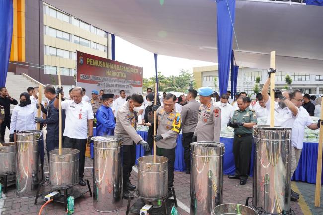 “Pemusnahan ini menjadi bagian dari proses penyidikan yang dilakukan oleh penyidik Ditresnarkoba Polda, makanya ikut kita hadirkan unsur Kejaksaan dan Pengadilan disini,” ujar Brigjen Kasihan Rahmadi.