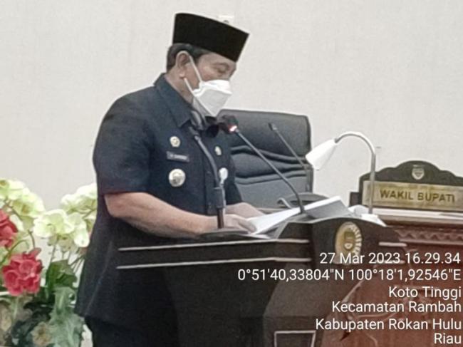 Rokan Hulu Membacabanngsa.co.id -Melalui Rapat Paripurna DPRD Rohul, Bupati Rohul H. Sukiman sampaikan Laporan Keterangan Pertanggungjawaban (LKPJ) Bupati Tahun Anggaran 2022 serta 2 Ranperda, yaitu, Ranperda Tentang Penyelenggaraan Penanggulangan Bencana dan Ranperda Tentang Perubahan Kedua atas Peraturan Daerah Nomor 5 Tahun 2016 Tentang Pembentukan dan Susunan Perangkat Daerah ( 28.3.2023)