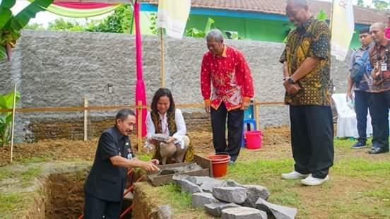 Bupati Pati Haryanto menghadiri peletakan batu pertama pembangunan Gereja Injili di Tanah Jawa (GITJ) Margorejo di Desa Badehan Kecamatan Margorejo, pada Sabtu (28/12/2019) siang.