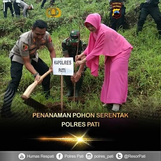 Kapolres Pati AKBP Bambang Yudhantara Salamun, S.I.K bersama PJU Para Kapolsek dan Personil Serta Bhayangkari Polres Pati telah melaksanakan Penanaman Pohon bersama.Kegiatan penanaman pohon tersebut dalam rangka Polri peduli penghijauan.
