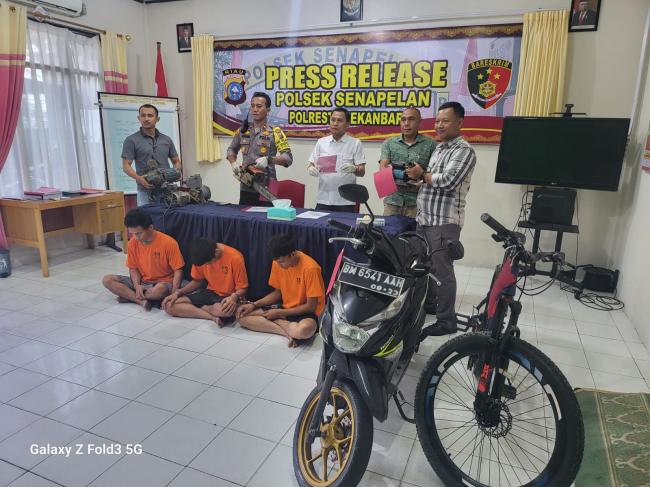 PEKANBARU - Kapolresta Pekanbaru Kombes Pol. Jeki Rahmat Mustika. S.I.K. Melalui Kapolsek Senapelan Kompol Noak P Aritonang S.I.K, Mengatakan Tim Opsnal Polsek Senapelan meringkus tiga pelaku komplotan pencuri di SMPN 18 Pekanbaru.