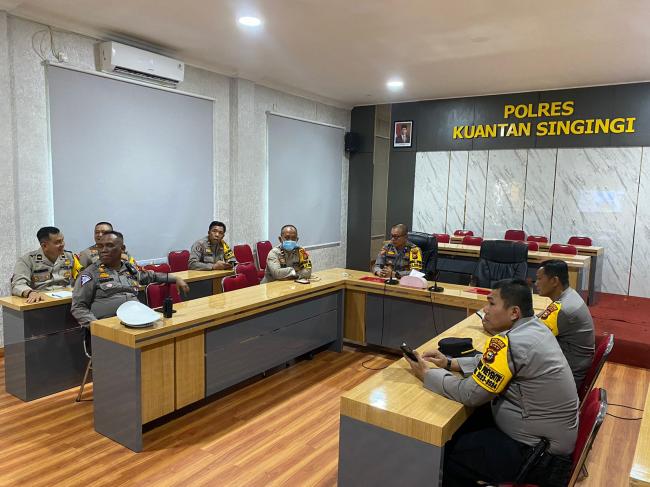 Jelang Pemilu 2024, Polres Kuansing Ikuti Vidcon Analisa Dan Evaluasi (Anev) Laporan Ops Mantap Brat