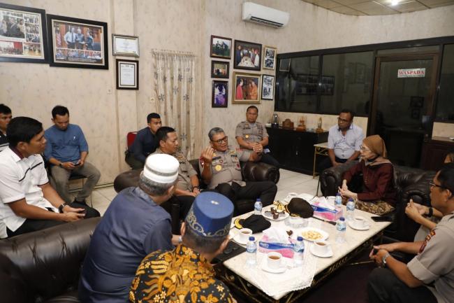 Kapolda Sumut didampingi Karo Ops Polda Sumut, Dir Reskrimsus Polda Sumut dan Kabid Humas Polda Sumut tiba di kantor Harian Waspada sekira pukul 15.00 wib disambut oleh ibu Karyati Sapri selaku pimpinan umum, bapak Sofyan Harahap selaku Wapemred serta staf Harian Waspada