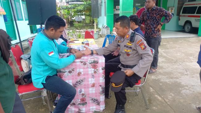 Kapolsek Reteh, AKP HERMAN, S.H yang turut memeriksakan diri, memberikan apresiasi Puskesmas Pulau Kijang atas langkah tindak lanjut terhadap surat dari Dinas Kesehatan Kab. Indragiri Hilir melalui kegiatan pemeriksaan kesehatan bagi petugas pemilu ini.