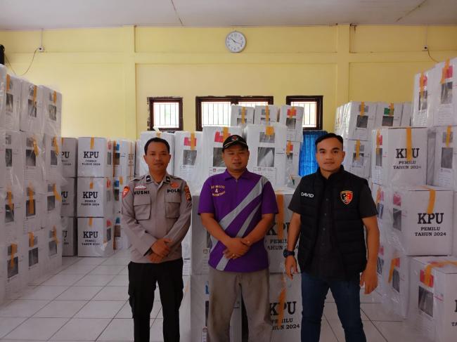 KAMPAR KIRI HILIR- Personil Polsek Kampar Kiri Hilir melaksanakan Patroli dan pengamanan logistik Pemilu di gudang PPK Kecamatan Kampar Kiri Tengah yang terletak di Kantor Camat Kampar Kiri Tengah, Minggu (11/2/2024).