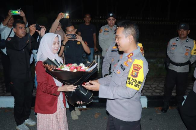 Sesampainya di sana para mahasiswa membawa buket bunga, kopi, dan berbagai meme. Dan diberikan langsung kepada Kapolres Kampar AKBP Ronald Sumaja yang didampingi para (Para Pejabat Utama) PJU Polres Kampar.