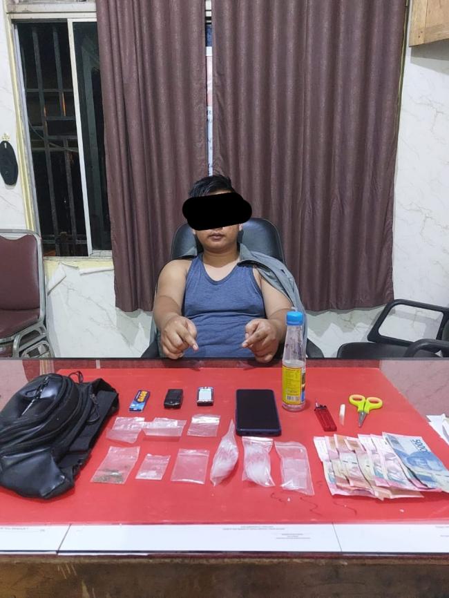 "Barang bukti yang berhasil diamankan meliputi 2 paket plastik klip bening yang diduga berisi narkotika jenis shabu, 1 buah kaca pirex, 1 buah kotak rokok, 1 lembar tisu, 1 buah plastik klip bening kosong dan 1 unit handphone Vivo Y16,"