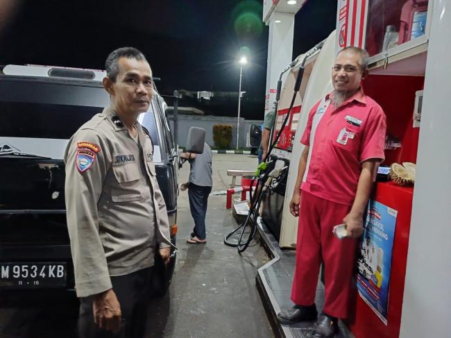 Personil Polsek Kuantan Tengah Patroli Antisipasi Praktik Kecurangan di SPBU Sungai Jering