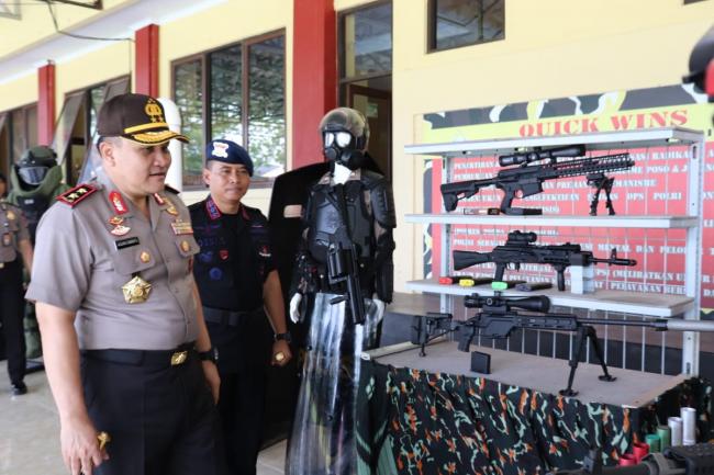 Selanjutnya Kapolda Banten melihat dan memeriksa peralatan yang dimiliki oleh Sat Brimob Polda Banten.