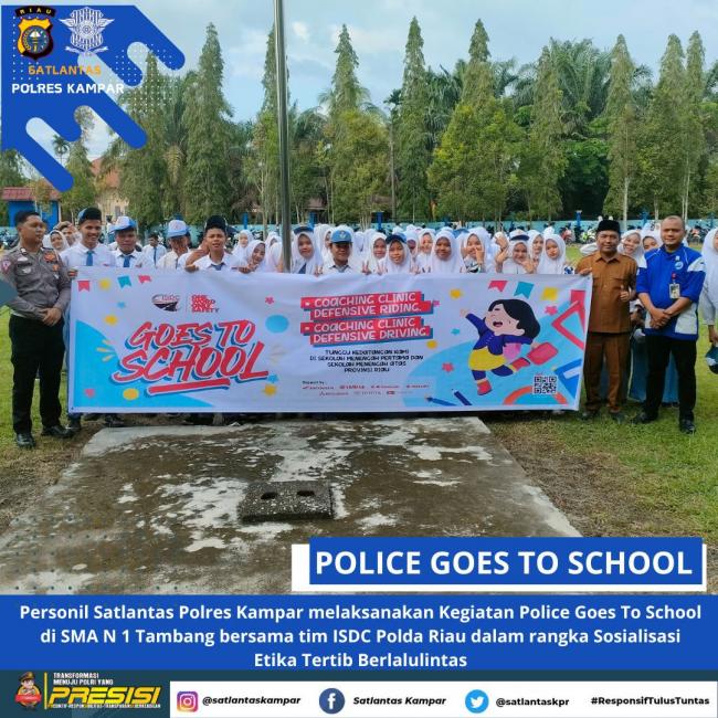 "Hari ini, Sat Lantas Polres Kampar melalui Kanit Kamsel, Aiptu Junaidi Alhamdulillah telah melaksanakan giat Police Go to School di SMAN 1 Tambang untuk mensosialisasikan pentingnya etika dalam berkendara demi keamanan dan ketertiban di jalan kepada adik-adik Siswa/Siswi," ucap Kasat Lantas Polres Kampar.