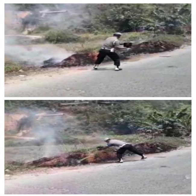 "Untuk menyelamatkan pengemudi kenderaan bermotor terhindar dari kecelakaan, kami pun turun dari kenderaan untuk memadamkan sampah dan lalang yang terbakar agar asapnya tidak muncul menghalangi jarak pandang para pengemudi yang melintas" sambung Iptu Budi Pardomuan Simanjuntak.