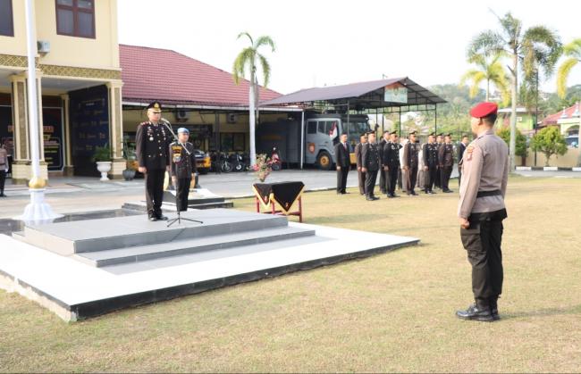 Kapolres Kampar AKBP Ronald Sumaja yang di wakili oleh Waka Polres Kampar Kompol Andi Cakra Putra menjadi Inspentuk Upacara kegiatan ini juga dihadiri oleh Pejabat Utama Polres Kampar, Kapolsek Jajaran dengan pserta personil Polres Kampar.