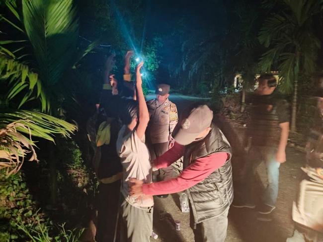 IPDA David Gusmanto, SH. MH langsung mendatangi remaja yang berkumpul dan melaksanakan pemeriksaan badan dan identitas. Pemeriksaan ini bertujuan untuk meminimalisir tindak kejahatan yang berawal dari miras, dan narkoba, serta tindak kejahatan dengan senjata tajam.