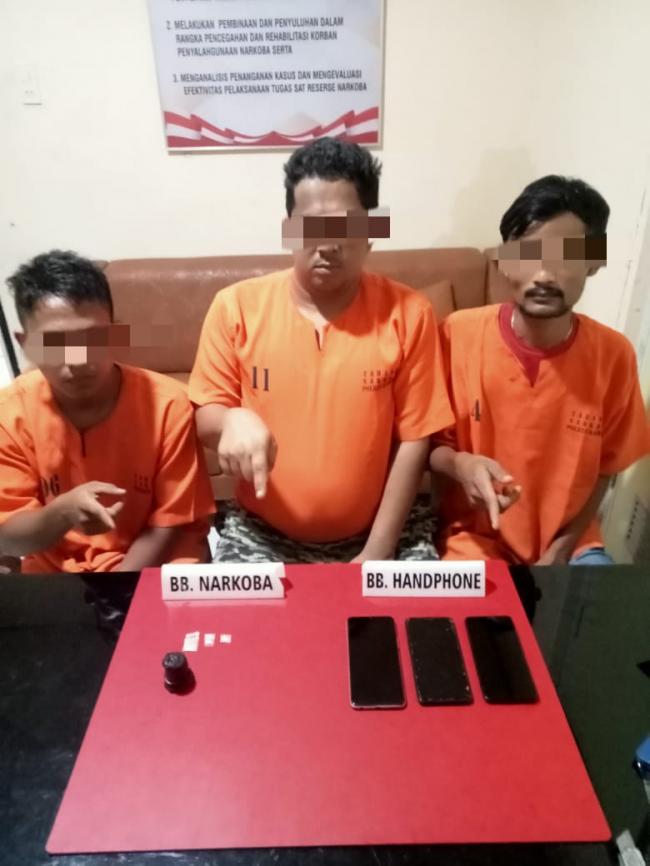 Ketiga pelaku adalah YE (39), AD (27) dan HA (26). Mereka ditangkap Satnarkoba Polres Kampar di Jalan Dusun Koto Manampung, Desa Kuok, Kecamatan Kuok.