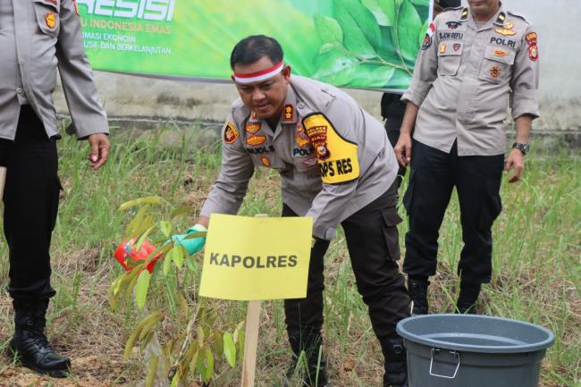 Sambut HUT Bhayangkara ke 78, Polres Rohul Bersama Pemda Rohul Tanam Pohon