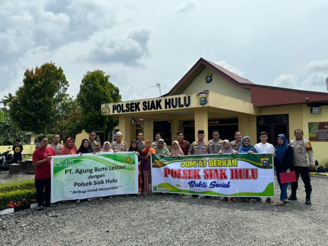 Kampar, Kegiatan Rutin Bantuan Sosial dalam giat Jumat Curhat dan Berkah kali ini dengan tema" Polri Presisi Mendukung Percepatan Transformasi Ekonomi Yang Inklusif dan Berkelanjutan Menuju Indonesia Emas". Kapolsek Siak Hulu AKP Asdisyah Mursyid, S.H di dampingi Waka Polsek AKP Yulius serta Jajaran Anggota bersama PT. Agung Bumi Lestari (ABL) yang dipimpin Sdr. M. Syarif Hidayatullah, S.H berkesempatan berbagi 20 Paket Sembako kepada warga kurang mampu. Jumat (12/7/2024)