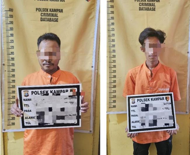 Kedua tersangka adalah AC (33) warga Desa Ranah Sungkai, Kecamatan XIII Koto Kampar dan AR (27) warga Desa Tarai Bangun Kecamatan Tambang Kabupaten Kampar. Mereka ditangkap di sebuah rumah di Desa Pulau Payung, Kecamatan Rumbio Jaya, Kabupaten Kampar, pada Jumat (9/8/2024).