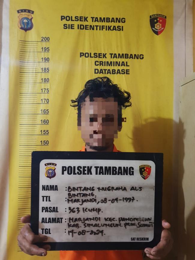 "Berdasarkan informasi yang didapat oleh Kanit Reskrim Polsek Tambang bahwa pelaku berada di Jalan Kubang Raya, Kecamatan Siak Hulu, personil langsung menuju TKP dan berhasil menangkap diduga pelaku yakni BN alias B yang langsung diamankan ke Mapolsek Tambang," tambahnya.