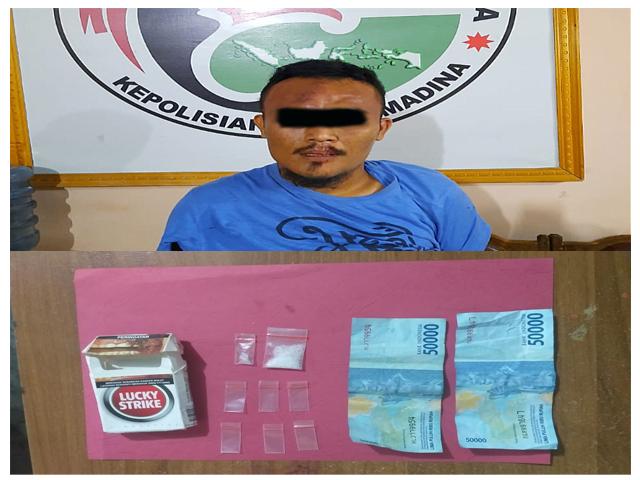 Kapolres Madina Akbp Irsan Sinuhaji, S.I.K, M.H melalui personil Sat Narkoba Polres Madina dibawah pimpinan Akp Muhammad Rusli, S.H, pada Senin tanggal 20 januari 2020 sekira pukul 21.30 Wib berhasil mengamankan dan menangkap satu orang laki laki dewasa pelaku tindak pidana narkotika golongan 1 jenis Sabu dari Desa Jambur Kec. Panyabungan Utara Kab. Mandailing Natal.