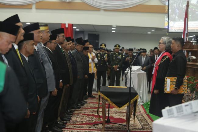 Dalam sumpah jabatan dan janji tersebut dibacakan oleh Ketua Pengadilan Negeri dan meminta kepada seluruh anggota dewan terpilih untuk bersama-sama mengucapkan sumpah jabatan sebagaimana telah di amanah kan oleh Undang-undang.