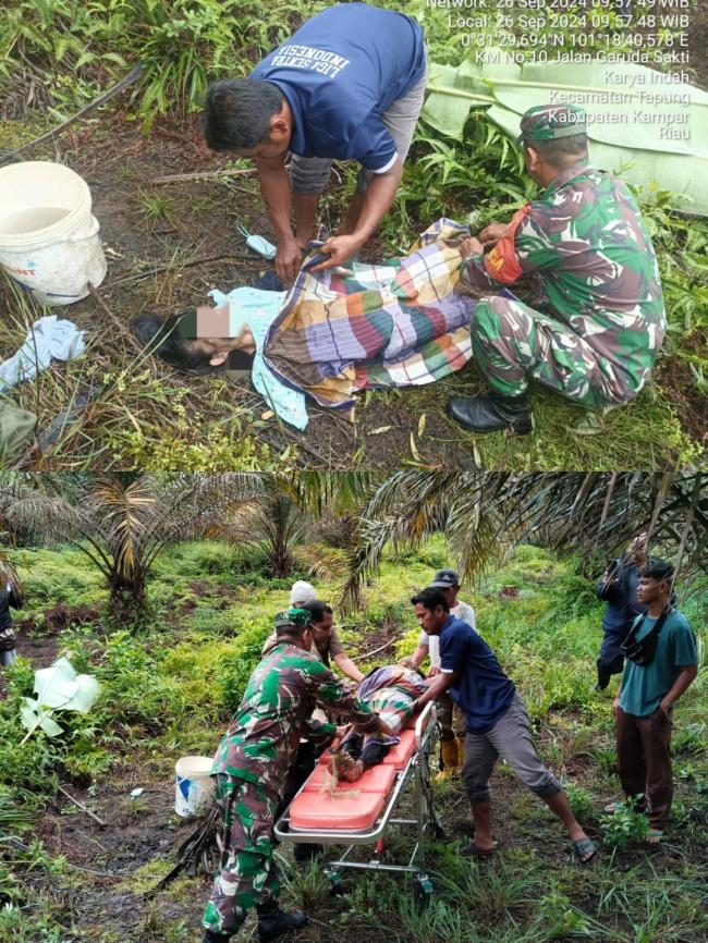 Korban di temukan di kebun PT Tama Jaya, KM 10 Dusun 2 Desa Karya Indah, Kecamatan Tapung, Kabupaten Kampar.