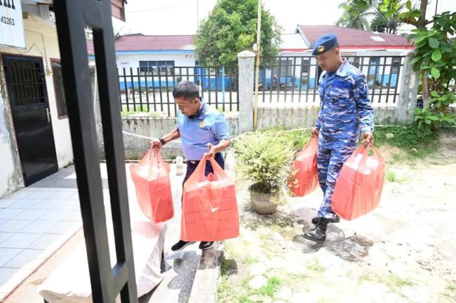 Pekanbaru - Pen Lanud Rsn. Pangkalan TNI Angkatan Udara Roesmin Nurjadin kembali menggelar aksi sosial bertajuk "Jumat Berkah" untuk memperingati Hari Ulang Tahun ke-79 Tentara Nasional Indonesia (TNI) pada Jumat (4/10/2024). Aksi ini menyasar dua tempat, yakni Masjid As-Salam di Jalan Pangeran Hidayat, Pekanbaru, dan Panti Asuhan Amanah di Jalan Banda Aceh, Pekanbaru, di mana nasi kotak dibagikan kepada masyarakat setempat.