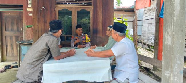 Bhabinkamtibmas Polsek Keritang Polres Indragiri Hilir AIPDA Muharram menyambangi warga Desa Pancur untuk menyampaikan himbauan mengenai Pilkada Serentak 2024, Kamis (17/10/2024).