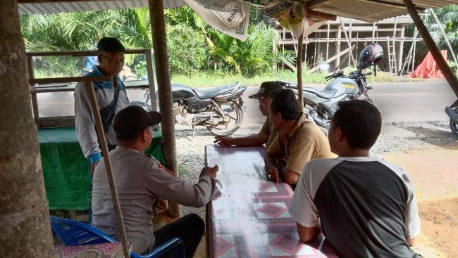 Bhabinkamtibmas Polsek Keritang Polres Indragiri Hilir AIPDA Muharram menyambangi warga Desa Pancur untuk menyampaikan himbauan mengenai Pilkada Serentak 2024, Rabu (10/10/2024).