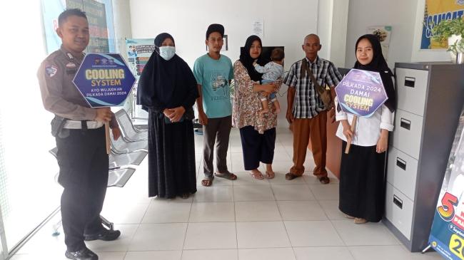 BANGKINANG -- Personel Satlantas Polres Kampar melakukan cooling system Pilkada Damai tahun 2024, kepada masyarakat yang sedang melakukan bayar pajak di Samsat Tapung Hilir, Kamis (7/11/2024).