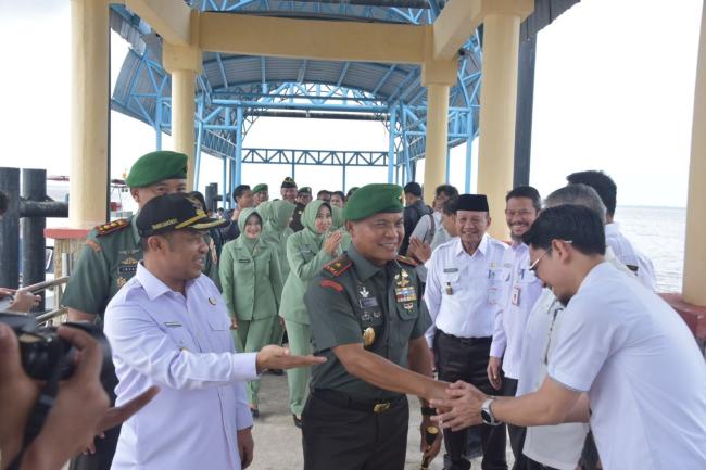 BENGKALIS - Kunjungan Komandan Resor Militer (Danrem) 031/Wirabima, Brigjen TNI Sugiyono dan ibu Inge sugiyono dan rombongan di kabupaten Bengkalis Di sambut hangat oleh Wakil Bupati Bengkalis H Bagus Santoso di pelabuhan Bandar Sri Laksamana (BSL) Bengkalis dan langsung menuju Wisma Daerah Sri Mahkota Bengkalis."Rabu 18 Desember 2024.