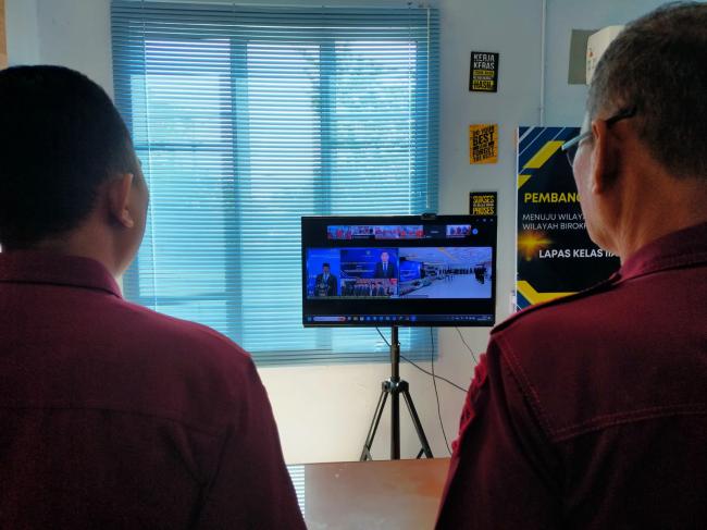 Bengkalis – Kementerian Imigrasi dan Pemasyarakatan (KEMENIMIPAS) menggelar acara pelantikan dan pengambilan sumpah jabatan pimpinan tinggi madya di lingkungan Kementerian Imigrasi dan Pemasyarakatan. Acara yang berlangsung di Aula Yusuf Adiwinata, Lantai 12, Kementerian Imigrasi dan Pemasyarakatan Ex Gedung Sentra Mulia. Kegiatan tersebut dihadiri oleh berbagai pejabat penting dari dalam dan luar kementerian, serta diikuti oleh Lapas Bengkalis secara virtual (09/01/2025).