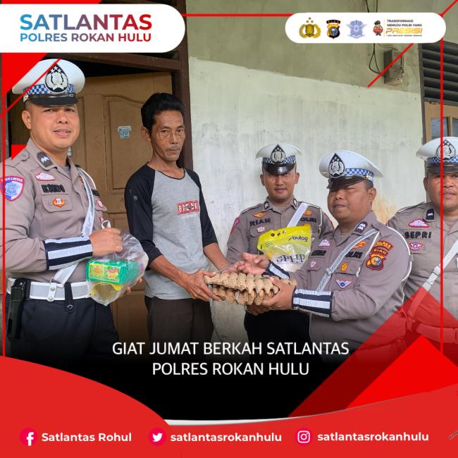 RAMBAH – Sat Lantas Polres Rokan Hulu kembali menunjukkan kepedulian terhadap masyarakat melalui kegiatan Jum'at Berkah yang dilaksanakan pada Jumat, (17/01/2025). Bertempat di Kecamatan Rambah, Kabupaten Rokan Hulu, Riau, kegiatan ini berlangsung mulai pukul 10.30 WIB hingga selesai dengan suasana penuh kehangatan dan kebersamaan.
