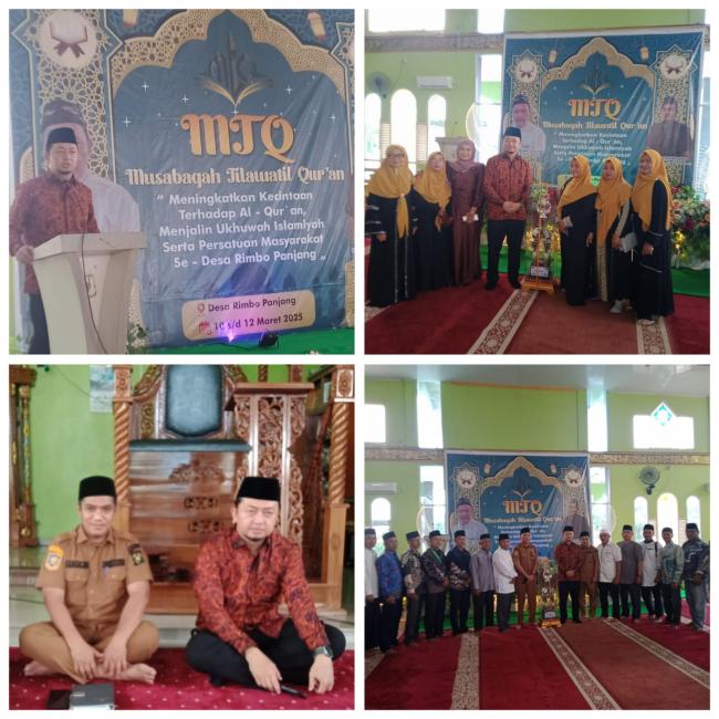 Pelaksanaan MTQ ke-IV di desa Rimbo panjang dibuka langsung Oleh Sekdes Rimbo panjang, Anas Mariono dan dihadiri tokoh masyarakat, perangkat desa serta alim ulama, para ibu-ibu dan para peserta yang akan ikut berlomba.