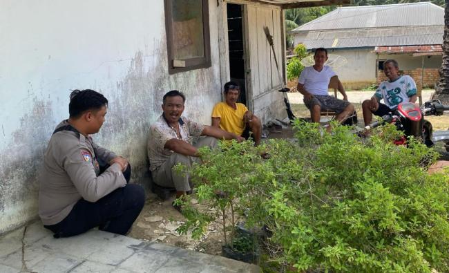 Bhabinkamtibmas Desa Adijaya Polsek Tebing Tinggi melaksanakan Sambang menyampaikan himbauan Kamtibmas di Desa Adi Jaya Kecamatan Tebing Tinggi Kabupaten Tanjung Jabung Barat Jambi,