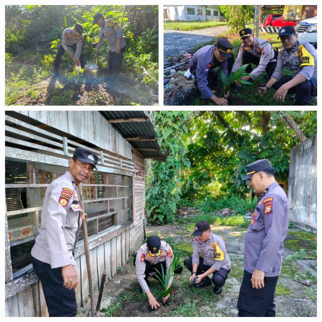 SIAK HULU, – Kapolsek Siak Hulu, Kompol Fauzi, menunjukkan komitmennya dalam menjaga kelestarian lingkungan dengan menanam bibit pohon di perkarangan Mako Polsek Siak Hulu. Kegiatan ini dilakukan pada Jumat (18/04/2025) pagi dan dihadiri oleh Panit Binmas IPDA Adi Zulfikar beserta anggota yang melaksanakan Piket Mako.