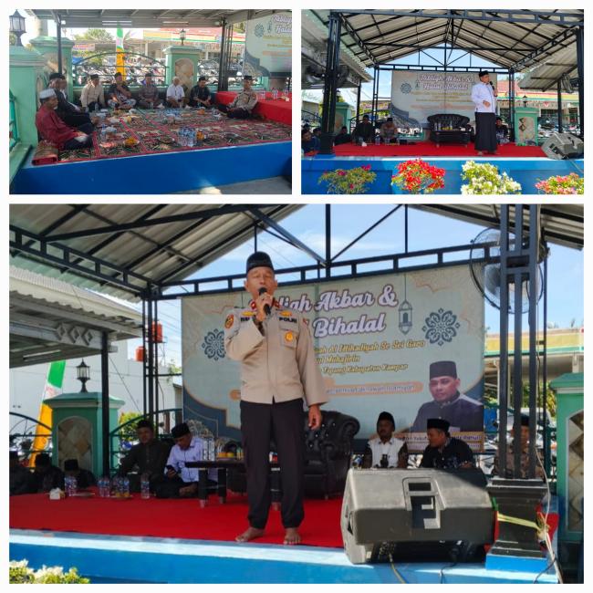 TAPUNG -- Untuk meningkatkan dan mempererat jalinan Ukhuwah Islamiah serta Ukhuwah Wathaniyah antar umat Islam, Polsek Tapung, menghadiri dan sampaikan pesan Kamtibmas dalam Acara pengajian Tabliqh Akbar antar Desa se Sei Garo yang digelar di halaman Masjid Nurul Muhajirin desa Indrasakti, Minggu (20/04/2025)